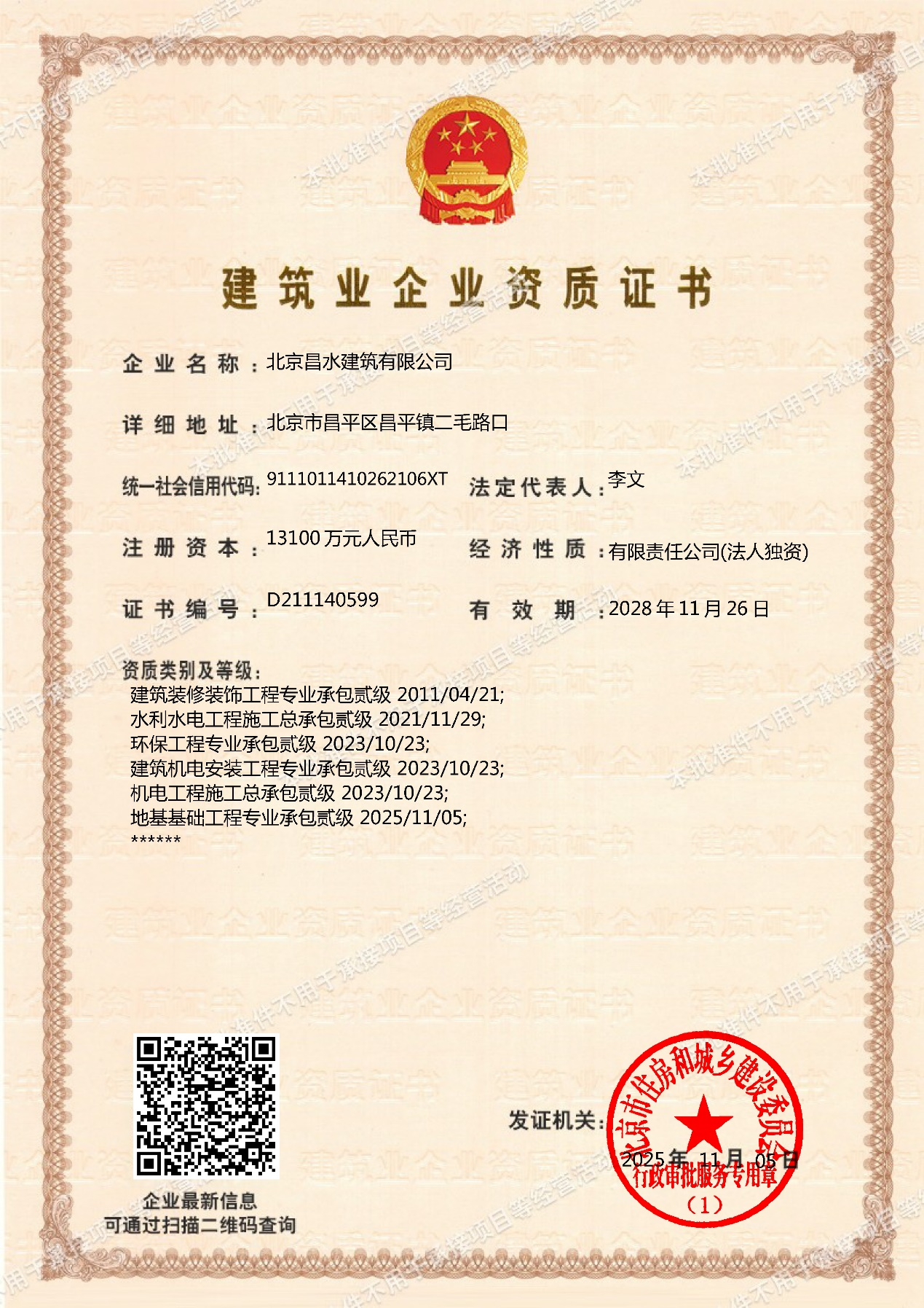 喜报连连,捷报频传!2025年11月5日,北京昌水建筑有限公司(以下简称“昌水公司”)成功增项地基基础工程专业承包贰级资质!