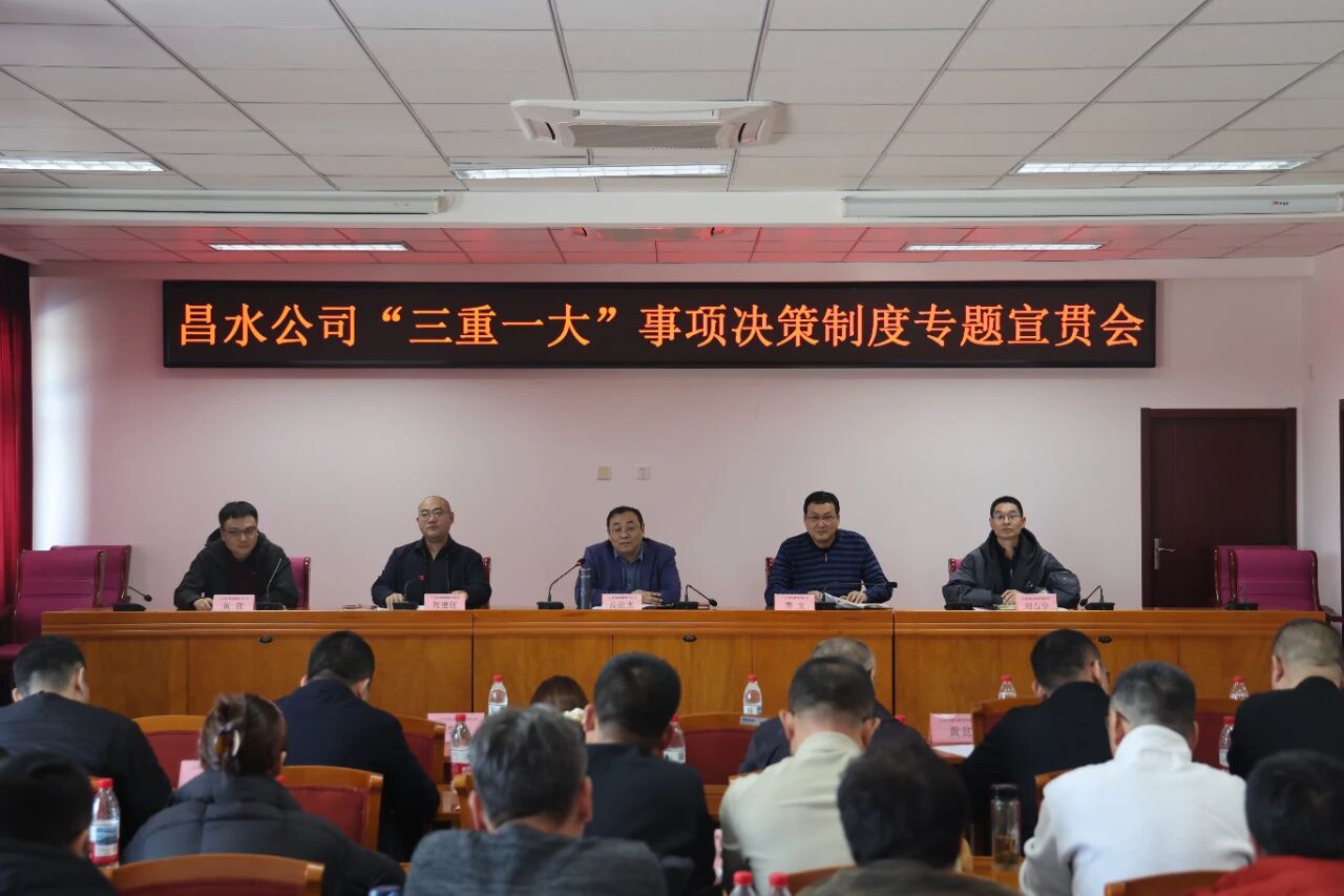12月14日,北京昌水建筑有限公司(以下简称“昌水公司”)召开“三重一大”事项决策制度专题宣贯会,旨在深入学习、全面领会、坚决贯彻新修订的《中共北京昌水建筑有限公司支部委员会“三重一大”事项决策制度》,为公司规范权力运行、防范决策风险、提升治理效能筑牢制度根基。公司领导班子成员、各部室经理及副经理、各施工处处长及副处长、子公司总经理及副总经理参加会议。